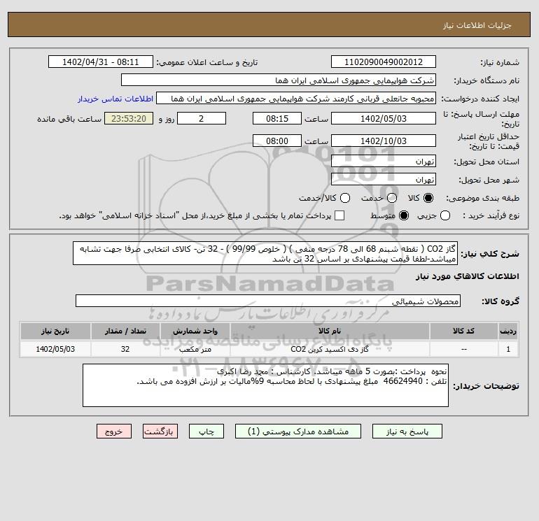 نام دستگاه خریدار:شرکت هواپیمایی جمهوری اسلامی ایران هما