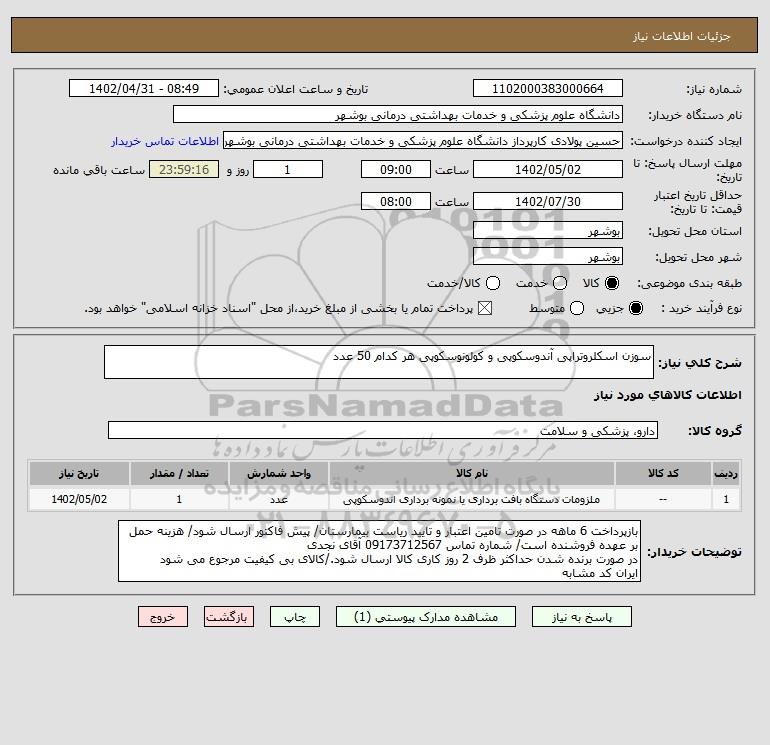 نام دستگاه خریدار:دانشگاه علوم پزشکی و خدمات بهداشتی درمانی بوشهر