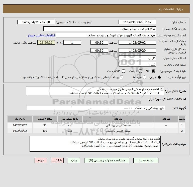 نام دستگاه خریدار:مرکز اموزشی درمانی نمازی