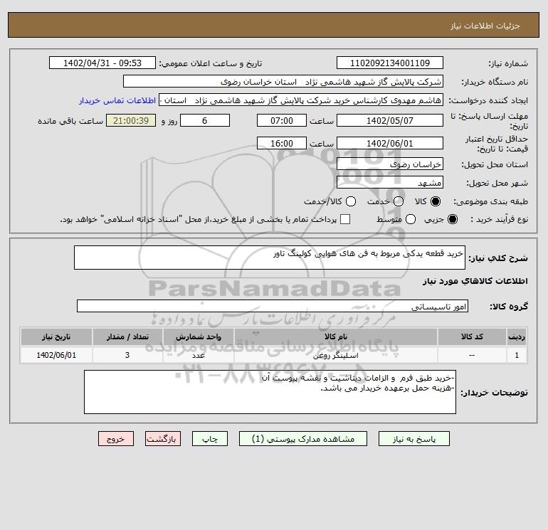 نام دستگاه خریدار:شرکت پالایش گاز شهید هاشمی نژاد استان خراسان رضوی