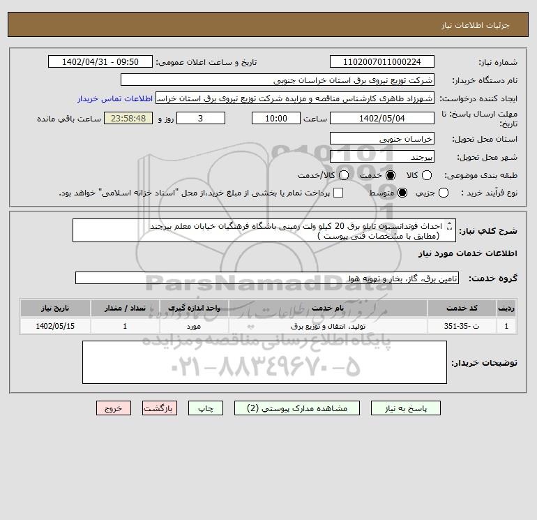 شرح کلی نیاز: احداث فوندانسیون تابلو برق 20 کیلو ولت زمینی باشگاه فرهنگیان خیابان معلم بیرجند