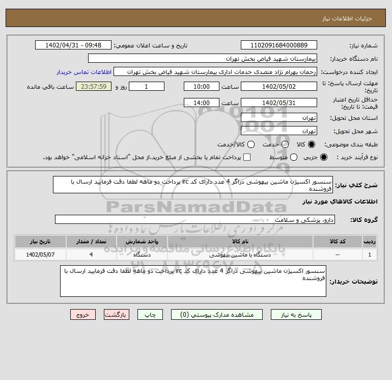 نام دستگاه خریدار:بیمارستان شهید فیاض بخش تهران