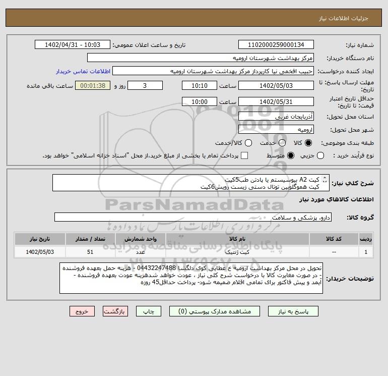 نام دستگاه خریدار:مرکز بهداشت شهرستان ارومیه