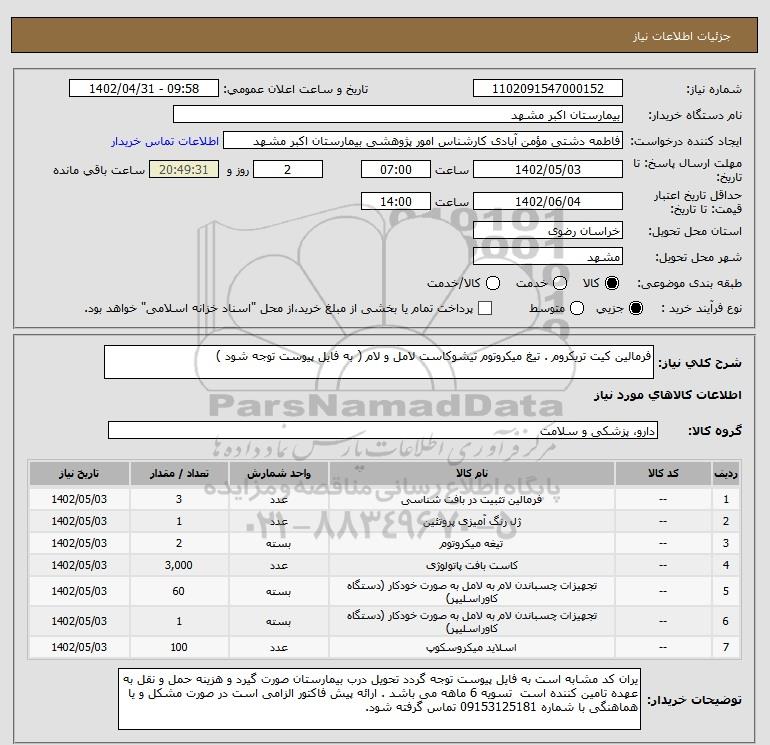 نام دستگاه خریدار:بیمارستان اکبر مشهد