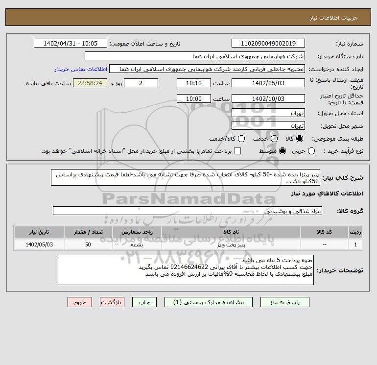 نام دستگاه خریدار:شرکت هواپیمایی جمهوری اسلامی ایران هما
