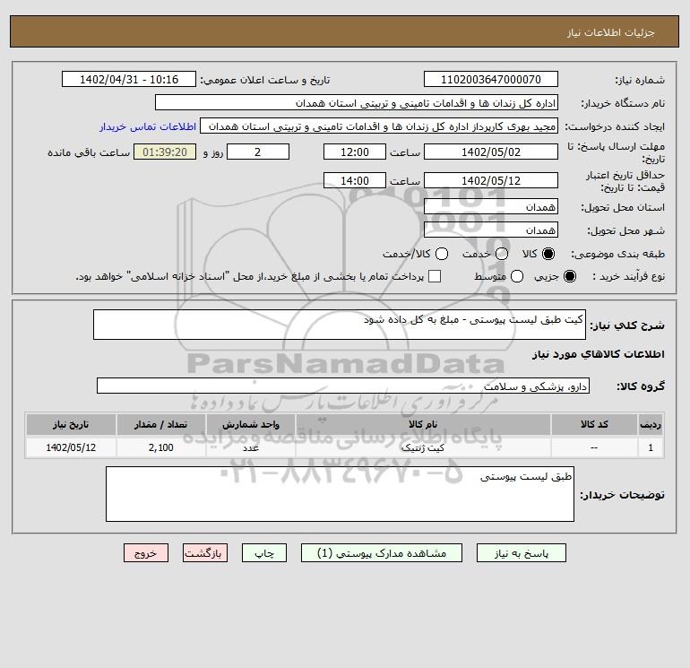 نام دستگاه خریدار:اداره کل زندان ها و اقدامات تامینی و تربیتی استان همدان