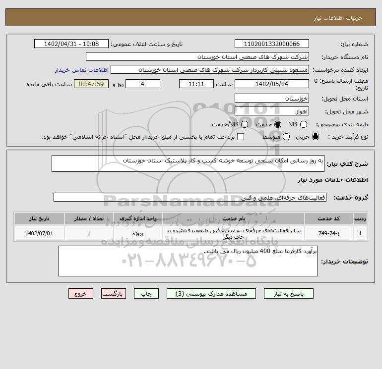شرح کلی نیاز: به روز رسانی امکان سنجی توسعه خوشه کسب و کار پلاستیک استان خوزستان