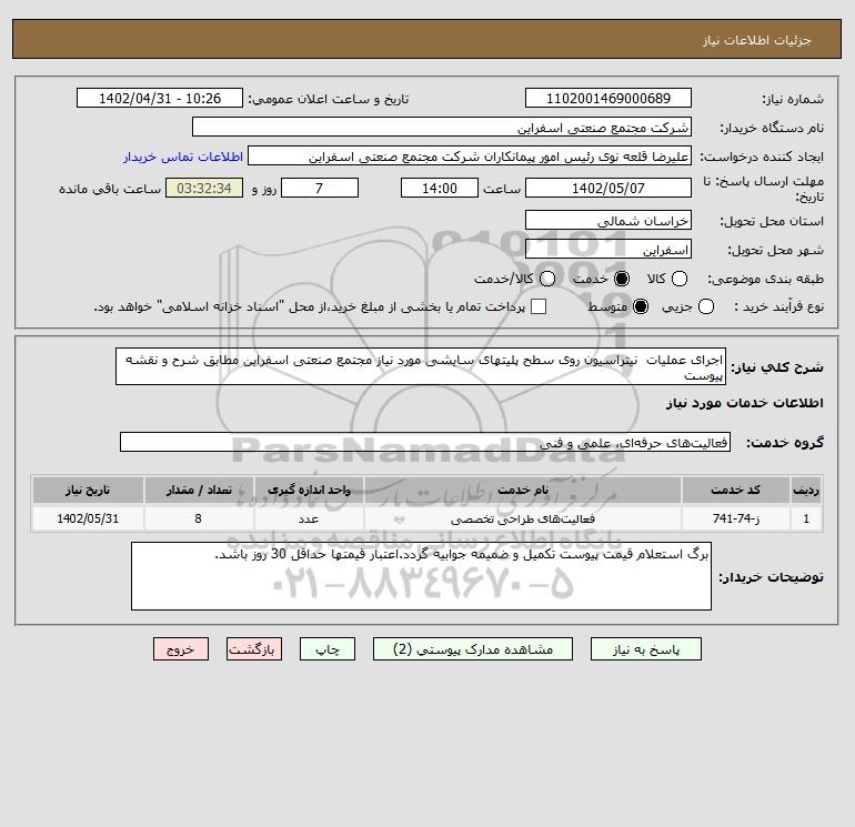 شرح کلی نیاز: اجرای عملیات نیتراسیون روی سطح پلیتهای سایشی مورد نیاز مجتمع صنعتی اسفراین مطابق شرح و نقشه پیوست
