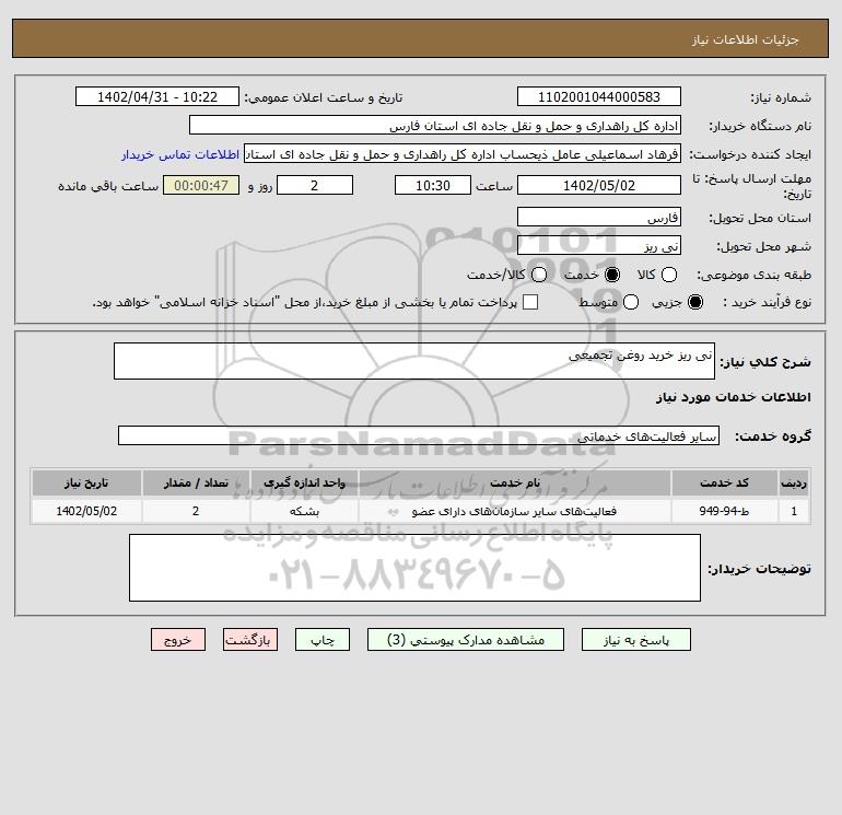 شرح کلی نیاز: نی ریز خرید روغن تجمیعی