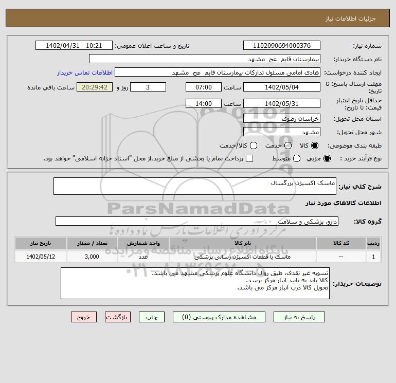 نام دستگاه خریدار:بیمارستان قایم عج مشهد