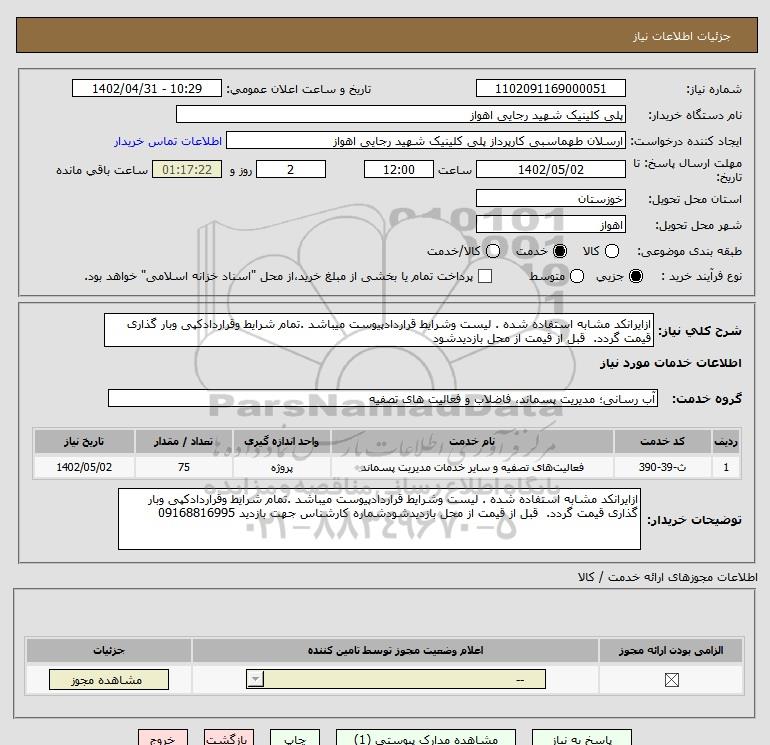 نام دستگاه خریدار:پلی کلینیک شهید رجایی اهواز