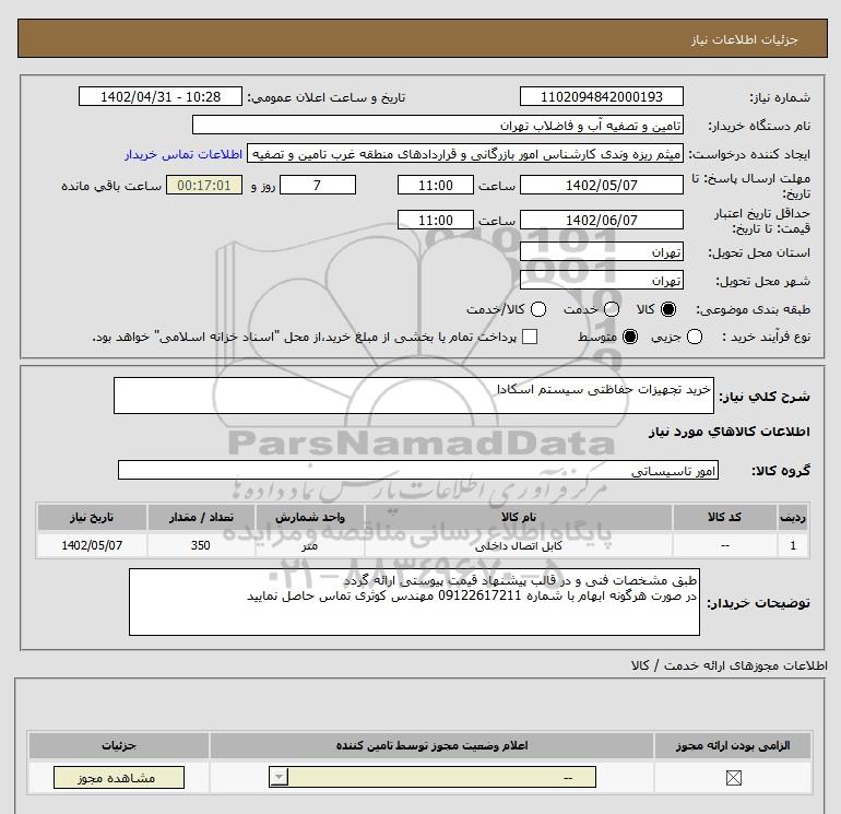 نام دستگاه خریدار:تامین و تصفیه آب و فاضلاب تهران
