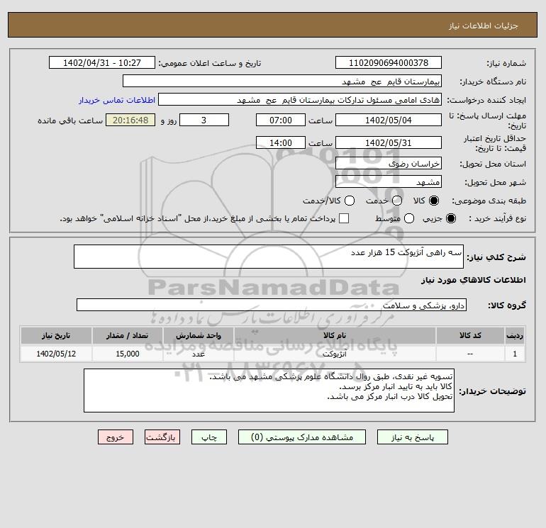 نام دستگاه خریدار:بیمارستان قایم عج مشهد