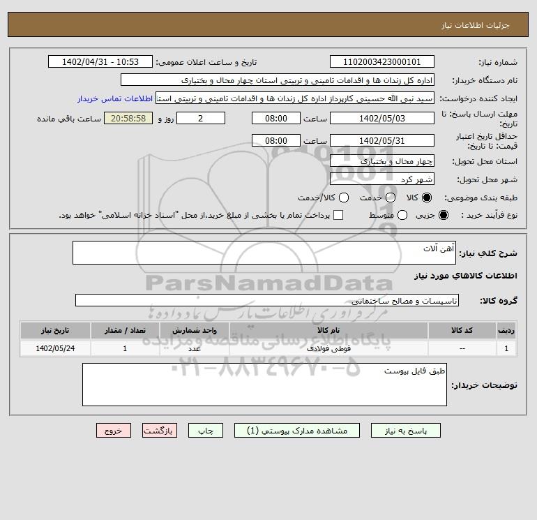 نام دستگاه خریدار:اداره کل زندان ها و اقدامات تامینی و تربیتی استان چهار محال و بختیاری