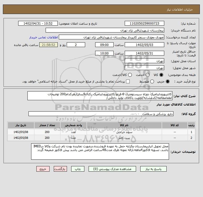 | 1 | -- | سوند جراحی | عدد | 200 | 1402/05/08 |