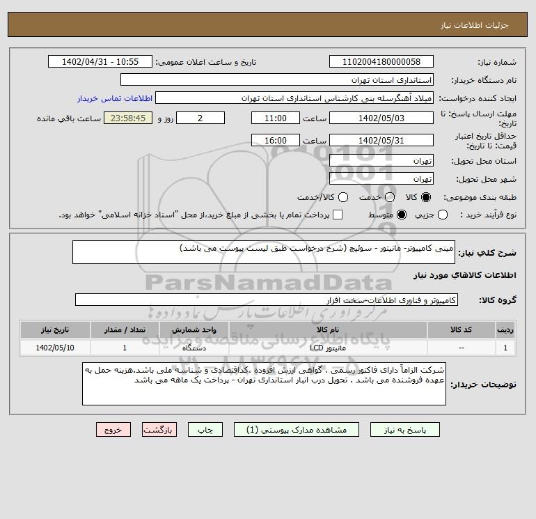 شرح کلی نیاز: مینی کامپیوتر- مانیتور - سوئیچ (شرح درخواست طبق لیست پیوست می باشد)