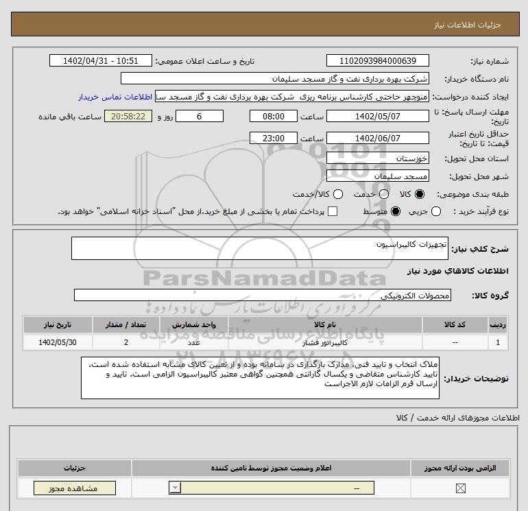شرح کلی نیاز: تجهیزات کالیبراسیون