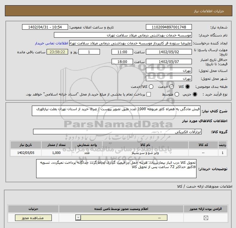 | 1 | -- | وایر شو و سر سیم | عدد | 1,000 | 1402/05/05 |