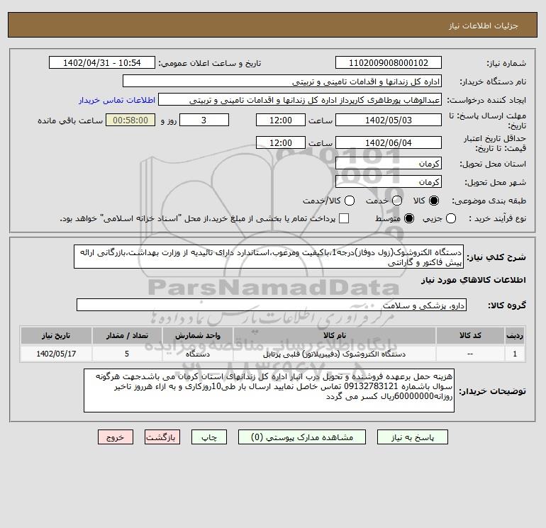 استعلام دستگاه الکتروشوک(زول دوفاز)درجه1،باکیفیت ومرغوب،استاندارد دارای تائیدیه از وزارت بهداشت،بازرگانی ارائه پیش فاکتور و گارانتی, استعلام دستگاه الکتروشوک(زول دوفاز)درجه1،باکیفیت ومرغوب،استاندارد دارای تائیدیه از وزارت بهداشت،بازرگانی ارائه پیش فاکتور و گارانتی