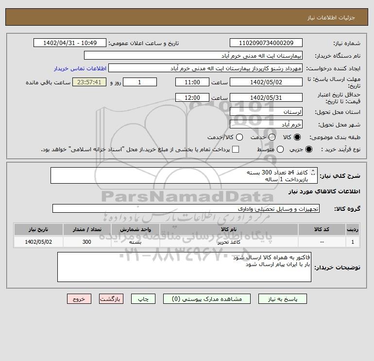 شرح کلی نیاز: کاغذ a4 تعداد 300 بسته