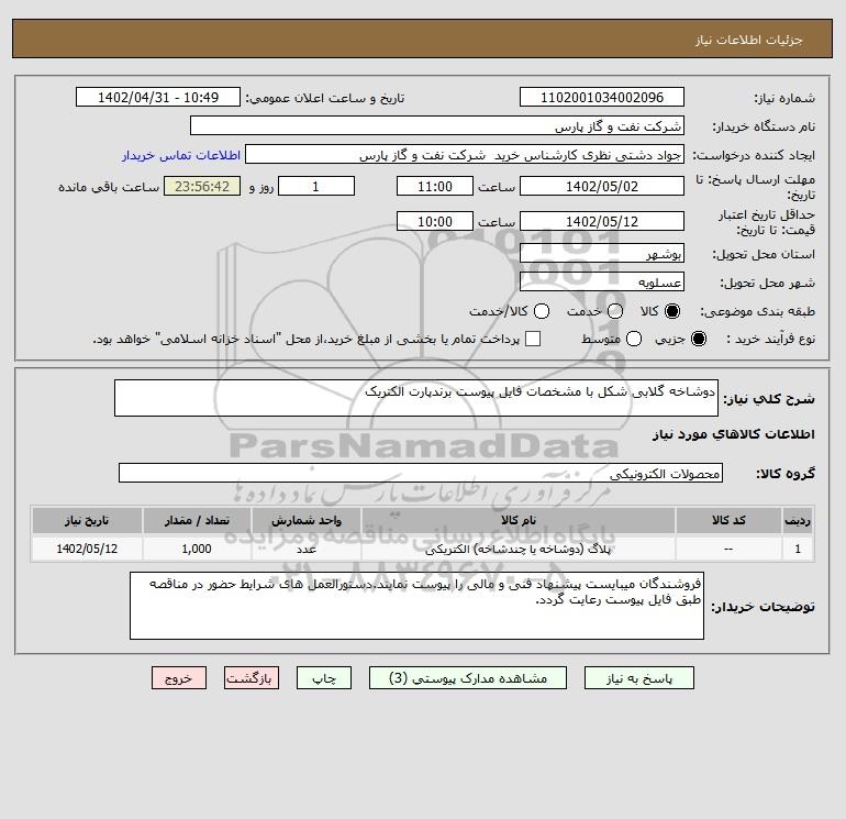 نام دستگاه خریدار:شرکت نفت و گاز پارس