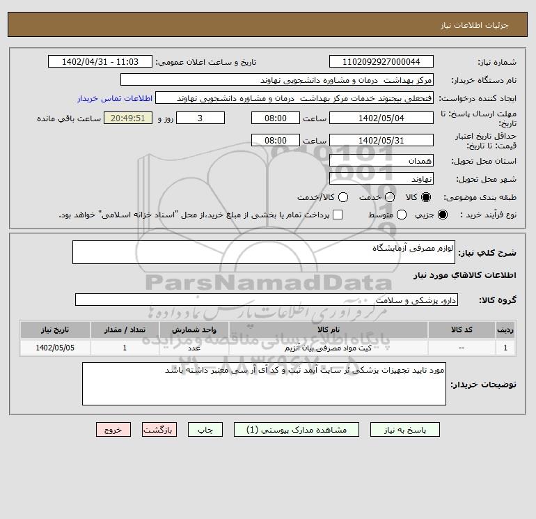 نام دستگاه خریدار:مرکز بهداشت درمان و مشاوره دانشجویی نهاوند