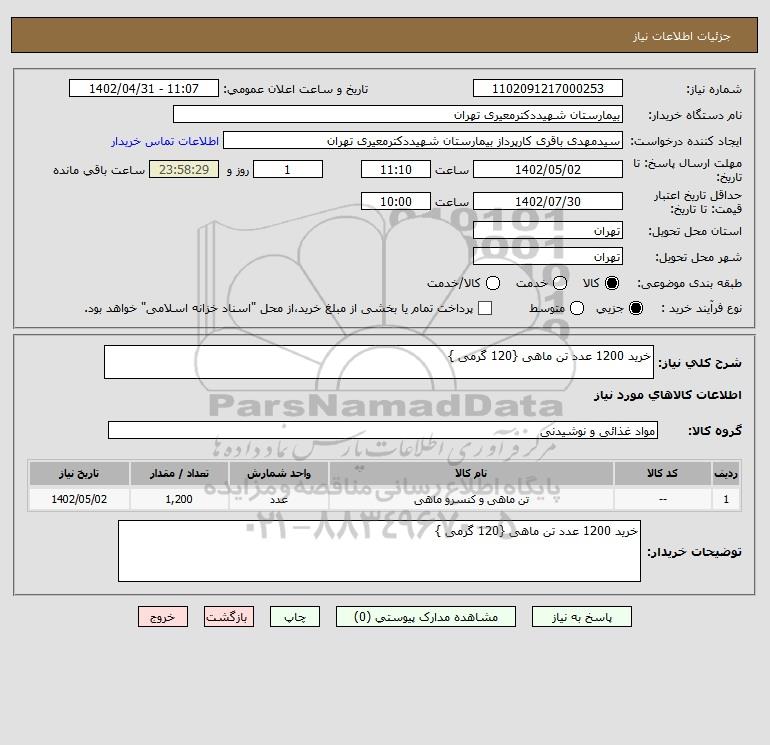 شرح کلی نیاز: خرید 1200 عدد تن ماهی {120 گرمی }