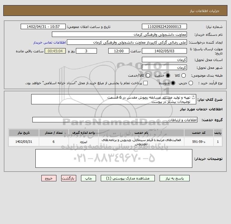 نام دستگاه خریدار:معاونت دانشجوئی وفرهنگی کرمان