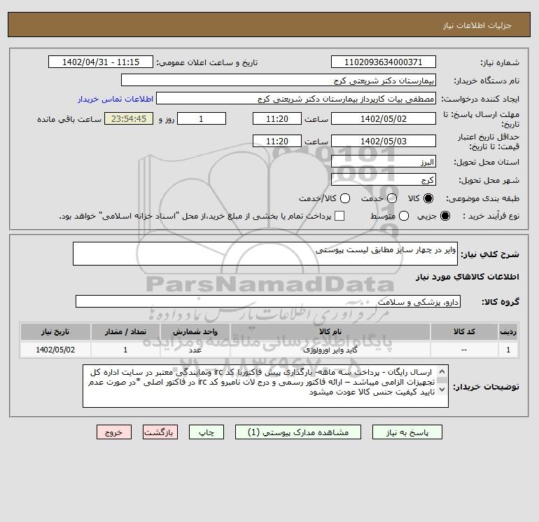 | 1 | -- | گاید وایر اورولوژی | عدد | 1 | 1402/05/02 |