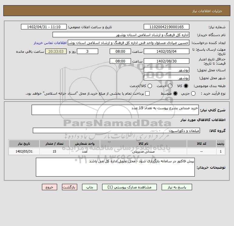 نام دستگاه خریدار:اداره کل فرهنگ و ارشاد اسلامی استان بوشهر