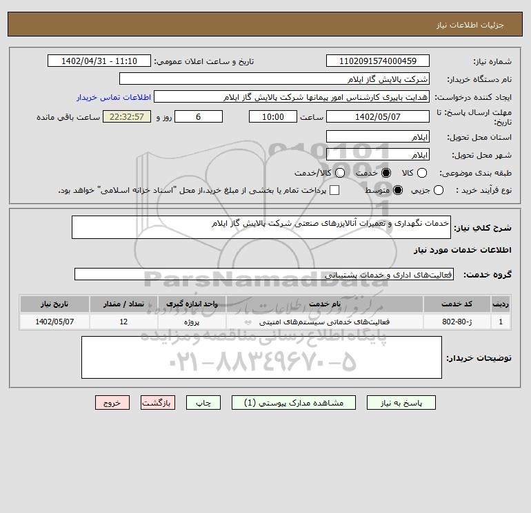 شرح کلی نیاز: خدمات نگهداری و تعمیرات آنالایزرهای صنعتی شرکت پالایش گاز ایلام