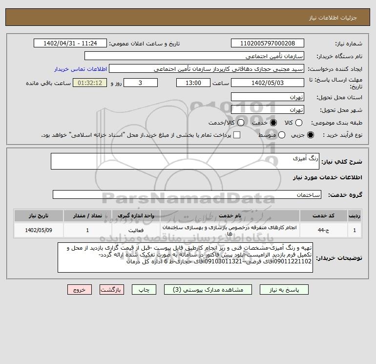 توضیحات خریدار:تهیه و رنگ آمیزی-مشخصات فنی و ریز انجام کارطبق فایل پیوست -قبل از قیمت گزاری بازدید از محل و تکمیل فرم بازدید الزامیست-آپلود پیش فاکتور در سامانه به صورت تفکیک شده ارائه گردد-09011221102آقای فرضی--09103011321آقای حجازی-ط 6 اداره کل درمان