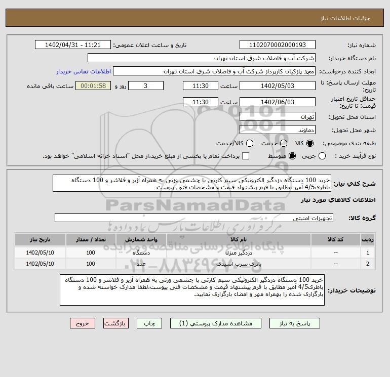 نام دستگاه خریدار:شرکت آب و فاضلاب شرق استان تهران