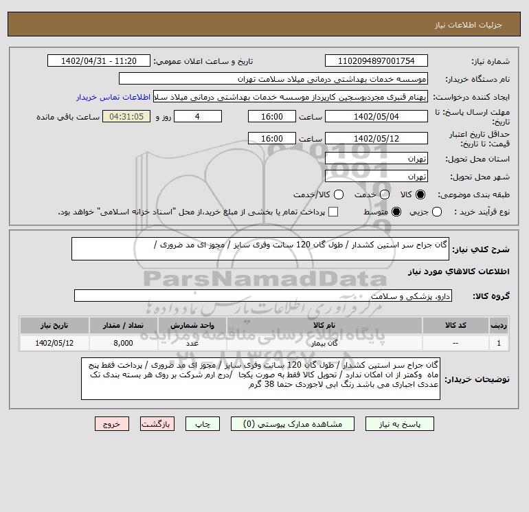 شرح کلی نیاز: گان جراح سر استین کشدار / طول گان 120 سانت وفری سایز / مجوز ای مد ضروری /