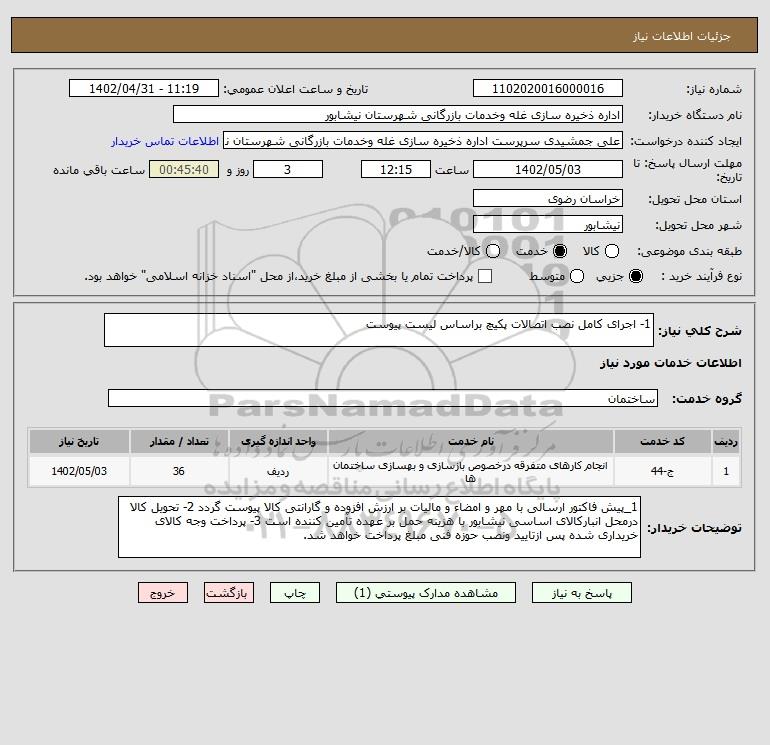 شرح کلی نیاز: 1- اجرای کامل نصب اتصالات پکیچ براساس لیست پیوست