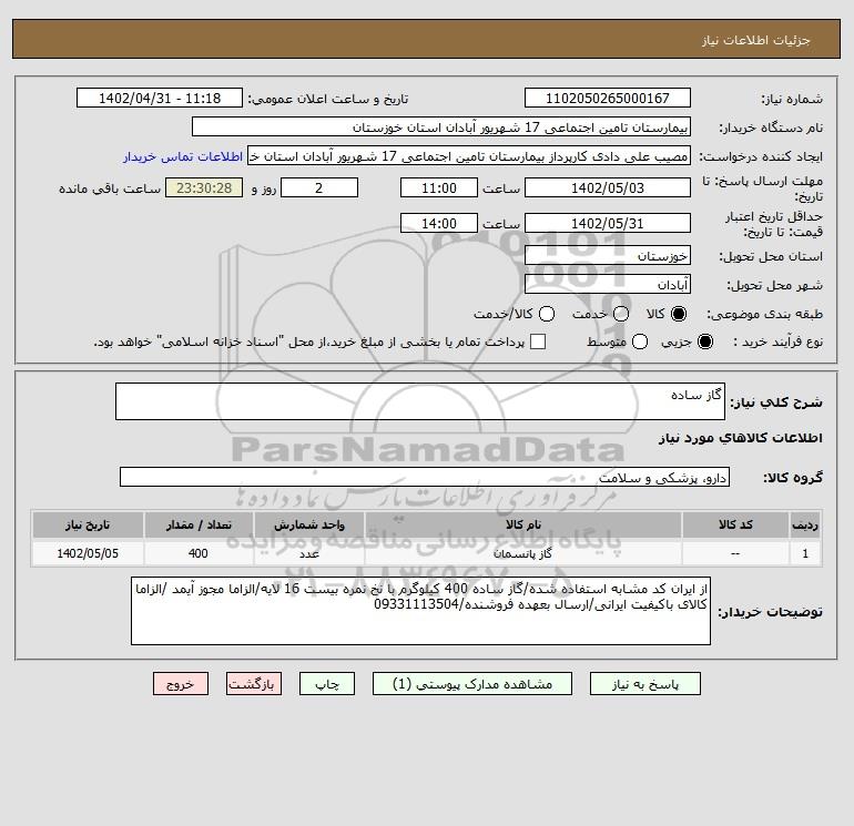 نام دستگاه خریدار:بیمارستان تامین اجتماعی 17 شهریور آبادان استان خوزستان