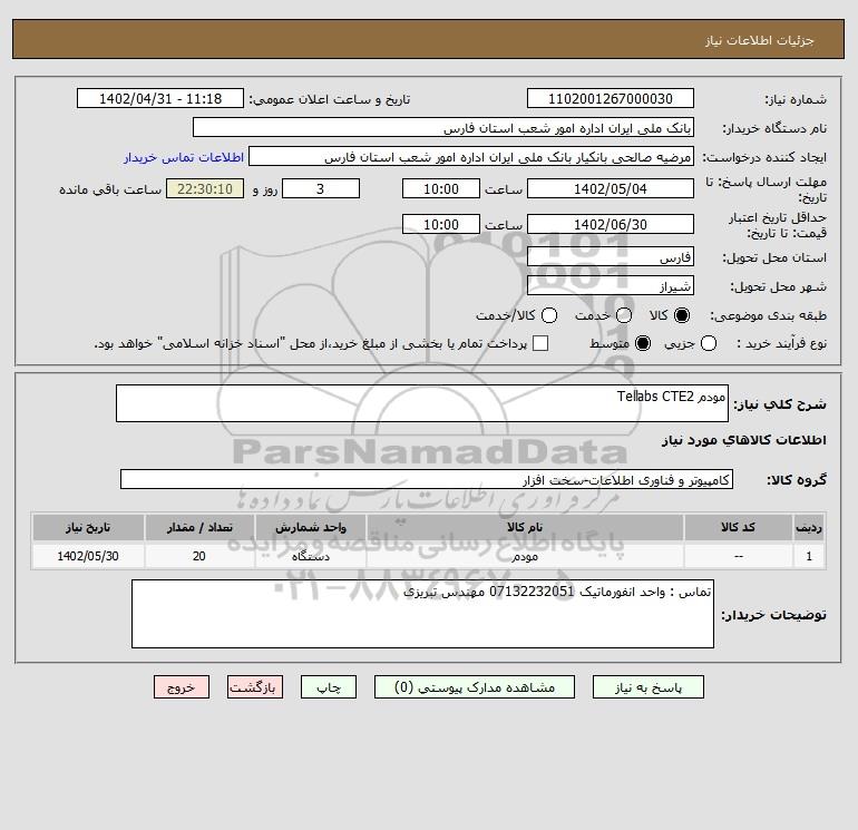 شرح کلی نیاز: مودم Tellabs CTE2