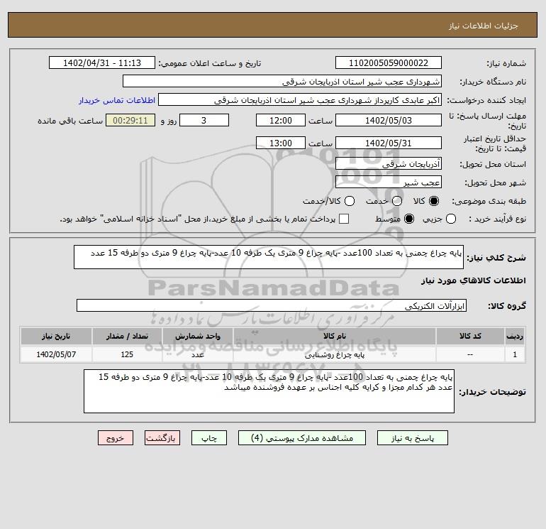 نام دستگاه خریدار:شهرداری عجب شیر استان اذربایجان شرقی