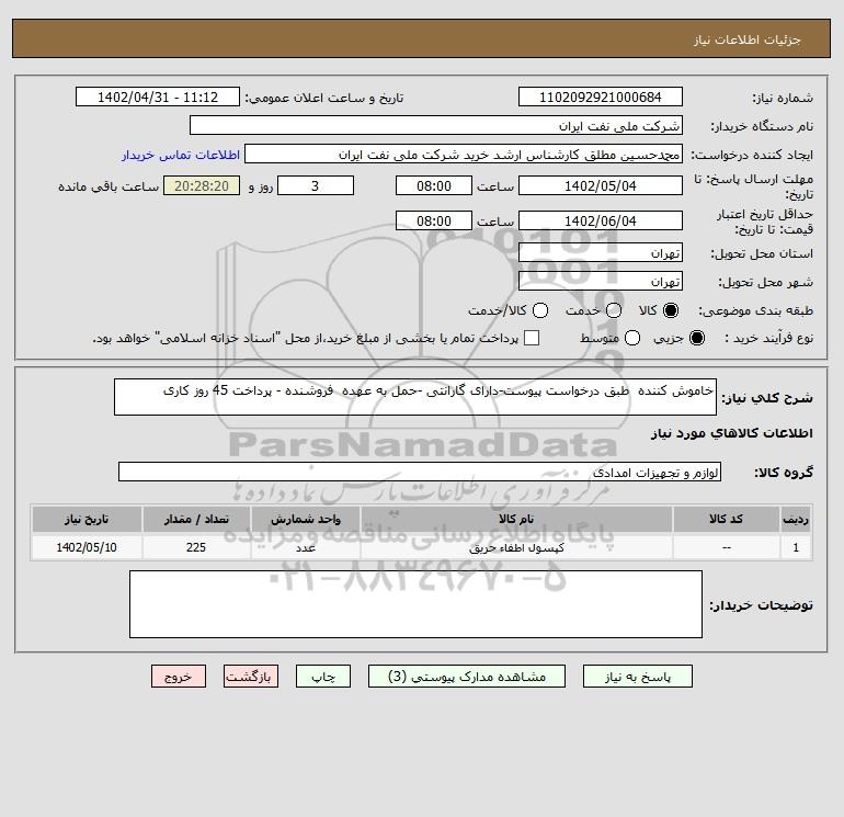 | 1 | -- | کپسول اطفاء حریق | عدد | 225 | 1402/05/10 |