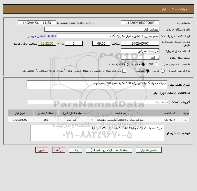 شرح کلی نیاز: اجرای جدول گذاری دوطرفه 30*50 به متراژ 250 متر طول