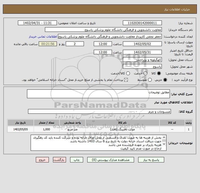 نام دستگاه خریدار:معاونت دانشجویی و فرهنگی دانشگاه علوم پزشکی یاسوج