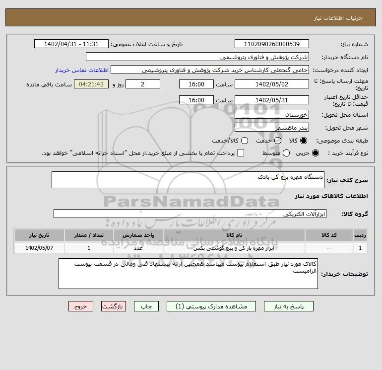 نام دستگاه خریدار:شرکت پژوهش و فناوری پتروشیمی