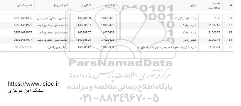 | 2100216 | خرید رولیک | 1402.5.7 | محمدحسن جعفری | 03531454977 |