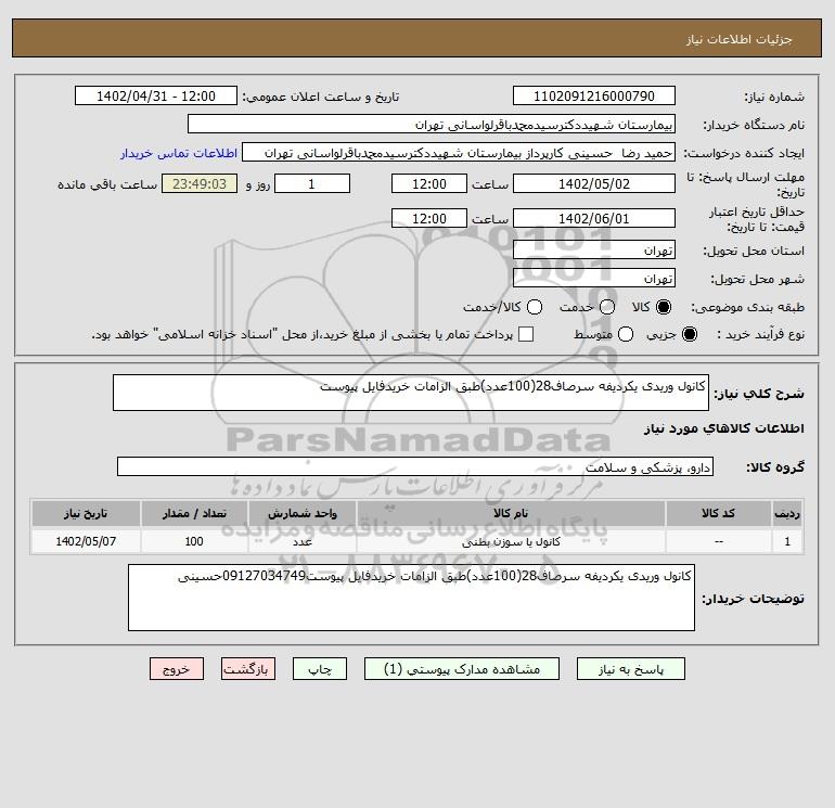 | 1 | -- | کانول یا سوزن بطنی | عدد | 100 | 1402/05/07 |