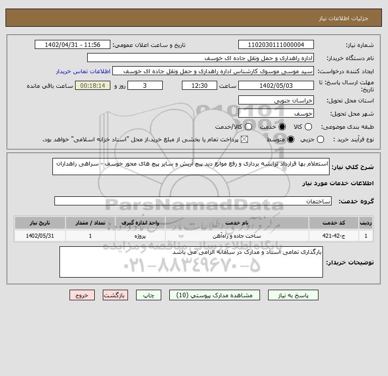 نام دستگاه خریدار:اداره راهداری و حمل ونقل جاده ای خوسف