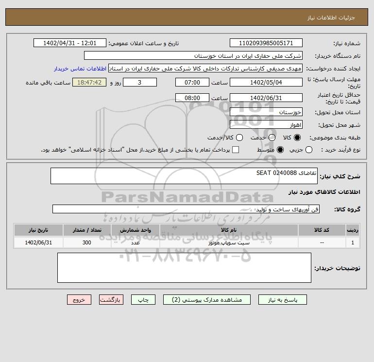 شرح کلی نیاز: تقاضای 0240088 SEAT