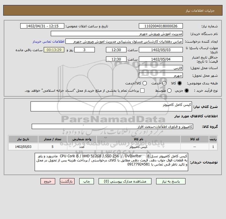 شرح کلی نیاز: کیس کامل کامپیوتر