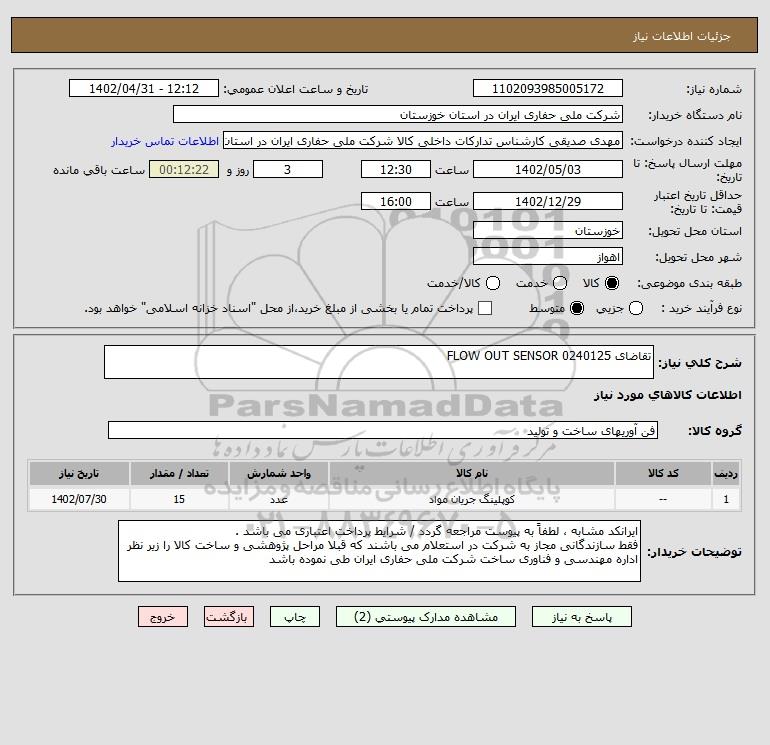 شرح کلی نیاز: تقاضای 0240125 FLOW OUT SENSOR