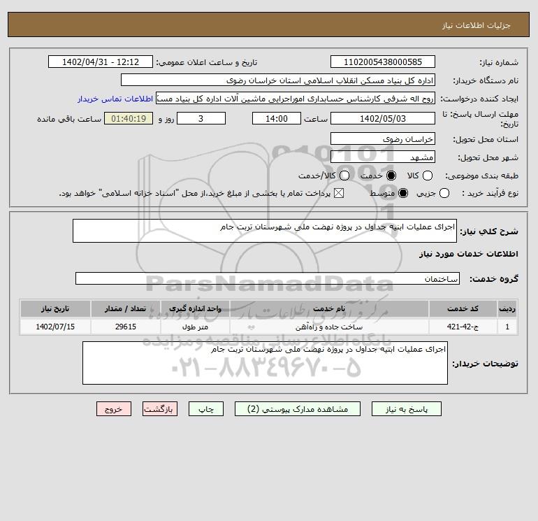 توضیحات خریدار:اجرای عملیات ابنیه جداول در پروژه نهضت ملی شهرستان تربت جام