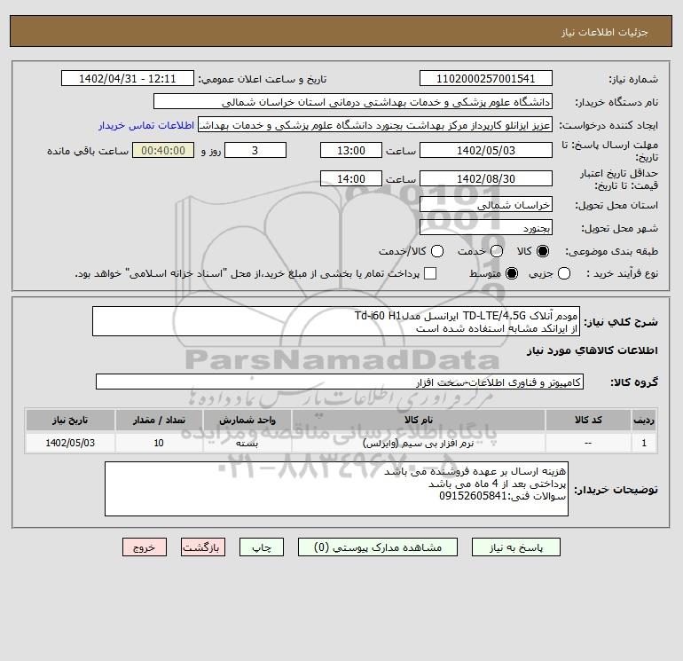نام دستگاه خریدار:دانشگاه علوم پزشکی و خدمات بهداشتی درمانی استان خراسان شمالی